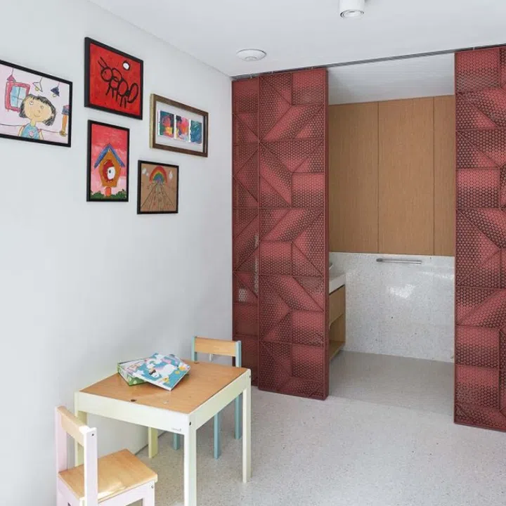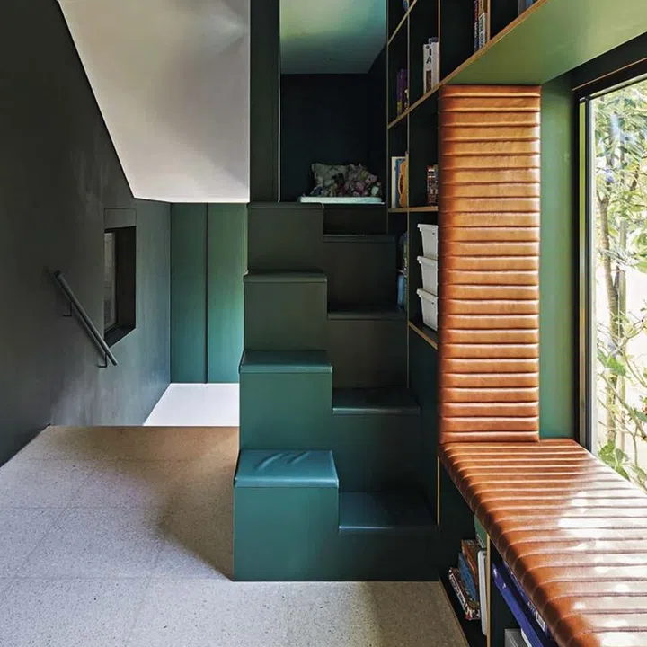 Tucked into a corner beside the dining area is the playroom that’s modelled after a miniature house, complete with a secret reading loft and a slide.