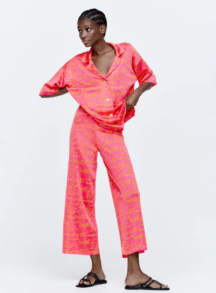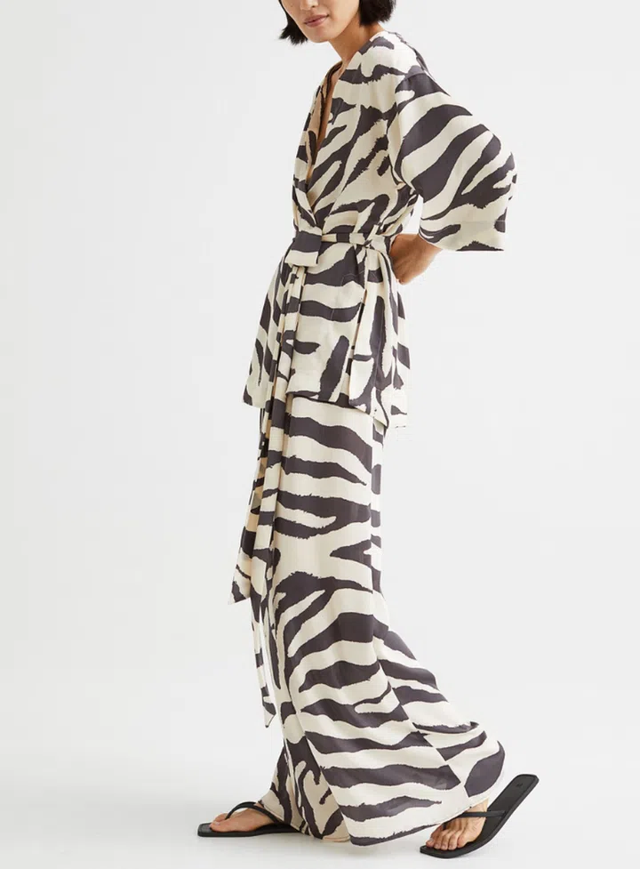Channel “glamping in Tanzania” vibes in a striking zebra-patterned blouse and trouser combination. The goal here is to look more animalia-chic, and less safari costume, so make sure to modernise the look with sleek jewellery and a pair of classic shoes – we recommend pointed flats or kitten heels – to keep it looking current.
