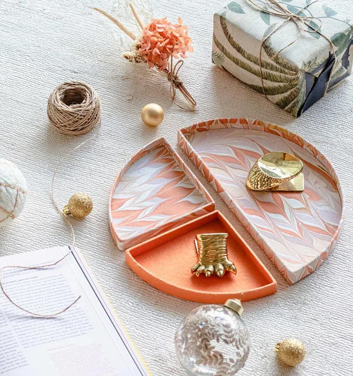 Instantly create an Instagrammable vignette and organise your knick-knacks with these eye-catching decorative trays
