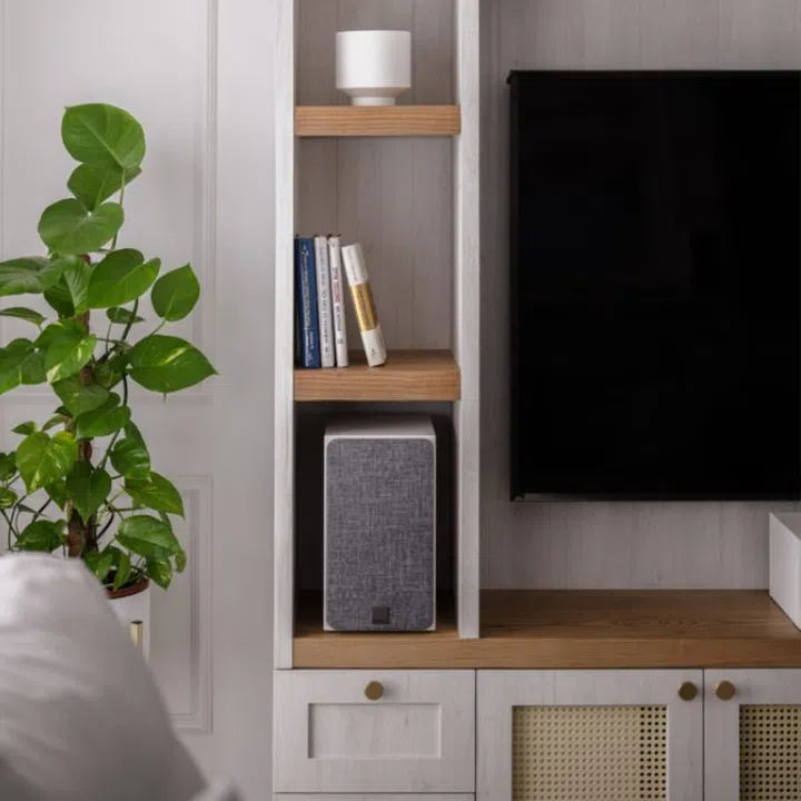 For added storage space, Raymond and the design team built in niches on the TV feature wall, giving the family space to display their collection of books and mementos.
