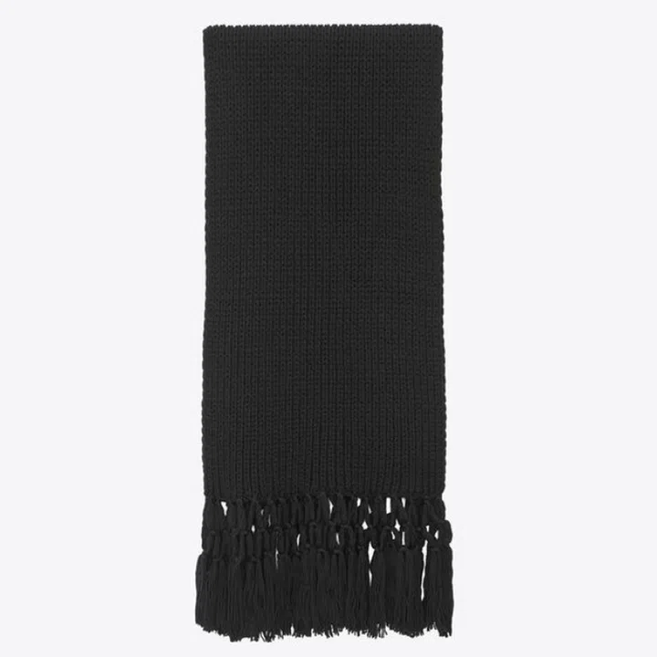 For that friend who’s always cold: Black Wool Knitted Scarf with Macramé, $1,090, Saint Laurent