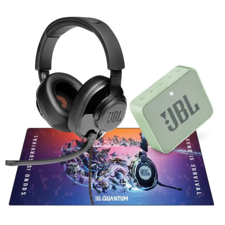 Quantum 200 Gaming Headset (Black) + Go 2 Portable Speaker (Mint) + Mouse Pad, $109, JBL at BHG Singapore