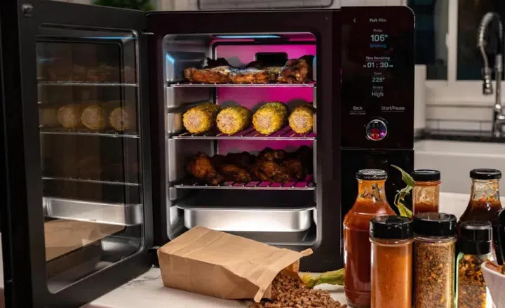 This nifty gadget fits nicely on a countertop and burns pellets to cook your meat. The smoke is eliminated without the need for filters or an external vent. The smoker is available for pre-order, with an estimated shipping date of August 2023.