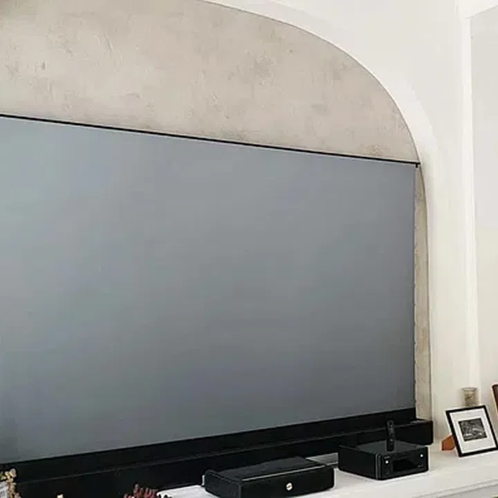 A blank TV taking up a wall can be an eyesore when it’s not in use, but you won’t have that problem if you’re using a projector screen. Most screens can be tucked out of sight when not in use, leaving the wall behind it free for other things such as a picture gallery or bookshelves. Mounting the projector screen in front of the window also works in small spaces where you don’t have much room.