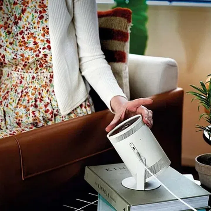 Samsung’s The Freestyle is a multi-functional projector that ticks all the boxes. A portable entertainment device with a projector, smart speaker, and ambient lighting,