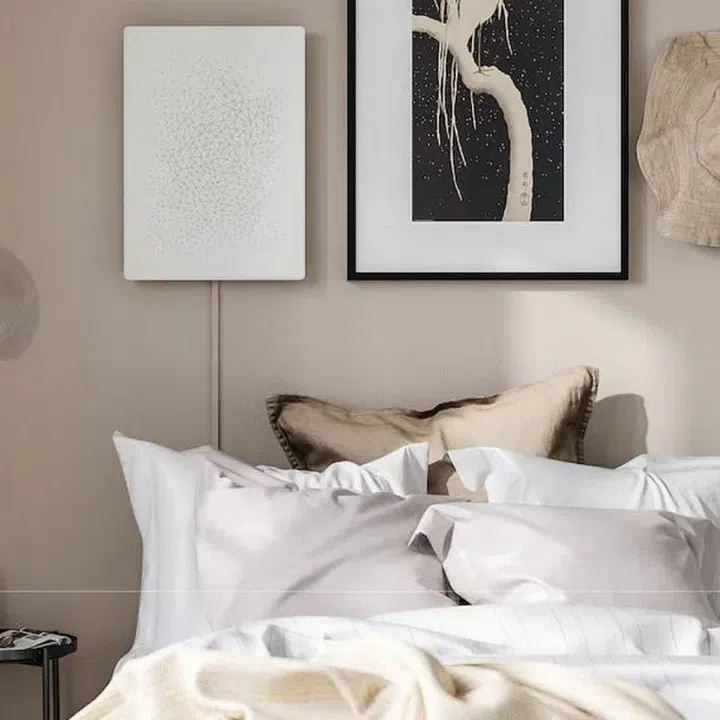 Mount the Symfonisk picture frame on the wall and hide the power cable to keep your guests guessing where the music is playing from.