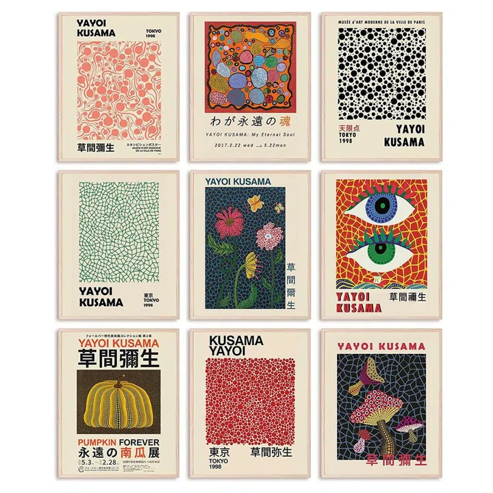Can’t afford the Louis Vuitton x Yayoi Kusama collection? This set of 9 posters featuring the artist’s iconic prints will look great on any wall.