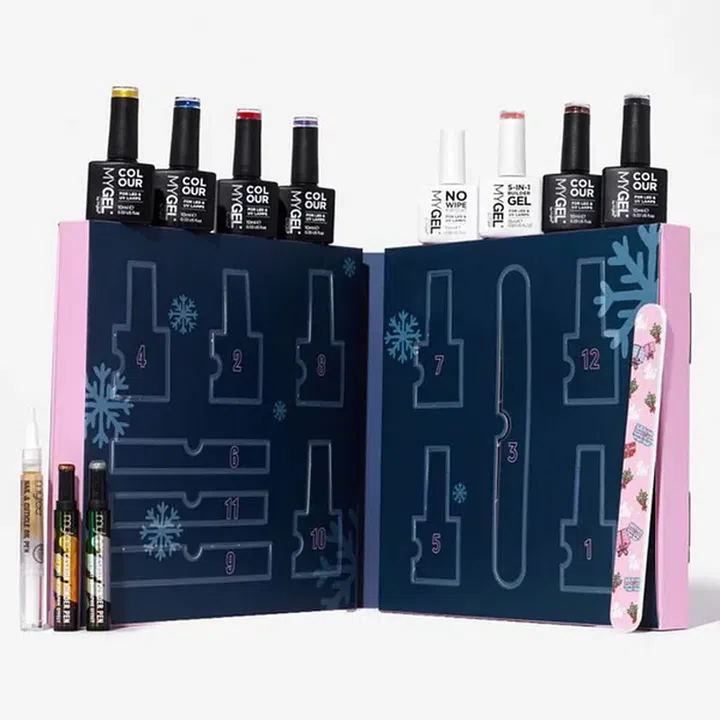 Pamper yourself or a loved one with this convenient at-home gel manicure advent calendar packed with popular and all-new celebratory shades, accompanied by necessities such as top coat and cuticle oil.