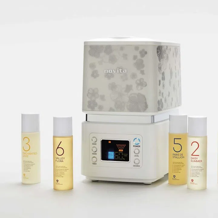 If the air in your air-conditioned room is too dry, add moisture with this Novita humidifier and enjoy aromatherapy with its special blends of essential oils.