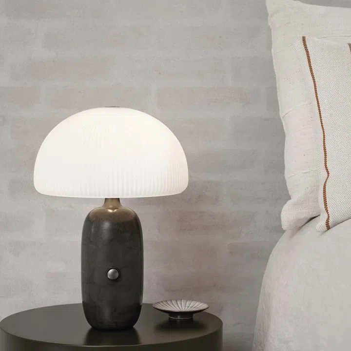 Through a three-layer opal glass shade, Vipp’s lamp provides soft illumination that is perfect for decorative lighting. The dimmer switch on the cylinder base allows you to adjust the brightness.