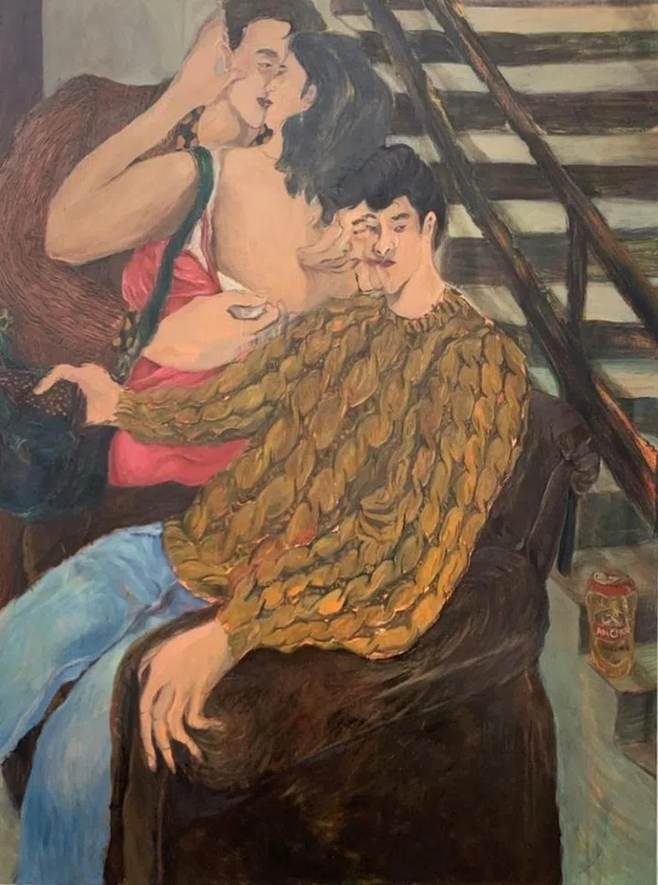 Pictured: Third Wheeling, 121 x 91cm, oil on Linen, 2021, Faris Heizer, $4,000