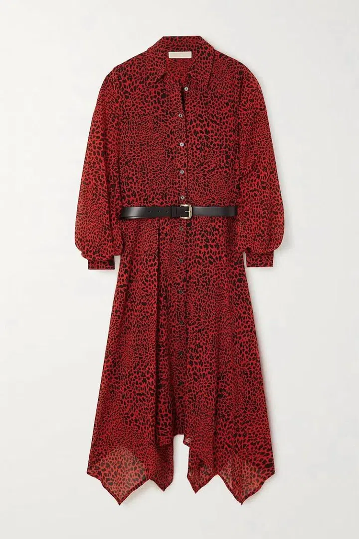 Pleated Belted Leopard-Print Recycled Crepe Midi Dress, $390, Michael Michael Kors at Net-a-Porter
