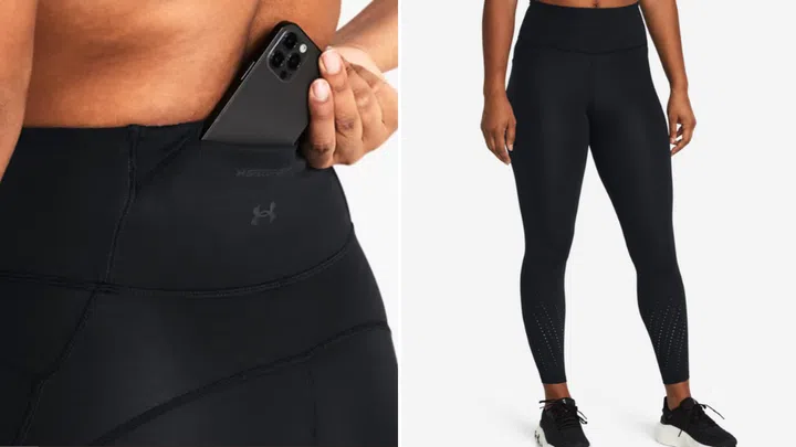 If you run with your phone, get these Under Armour leggings on your radar. The updated centre-back pocket is water-resistant and designed to expand and hold a large phone. It'll also keep your mobile secure without any bouncing. If you have other essentials, there are additional side pockets, too.