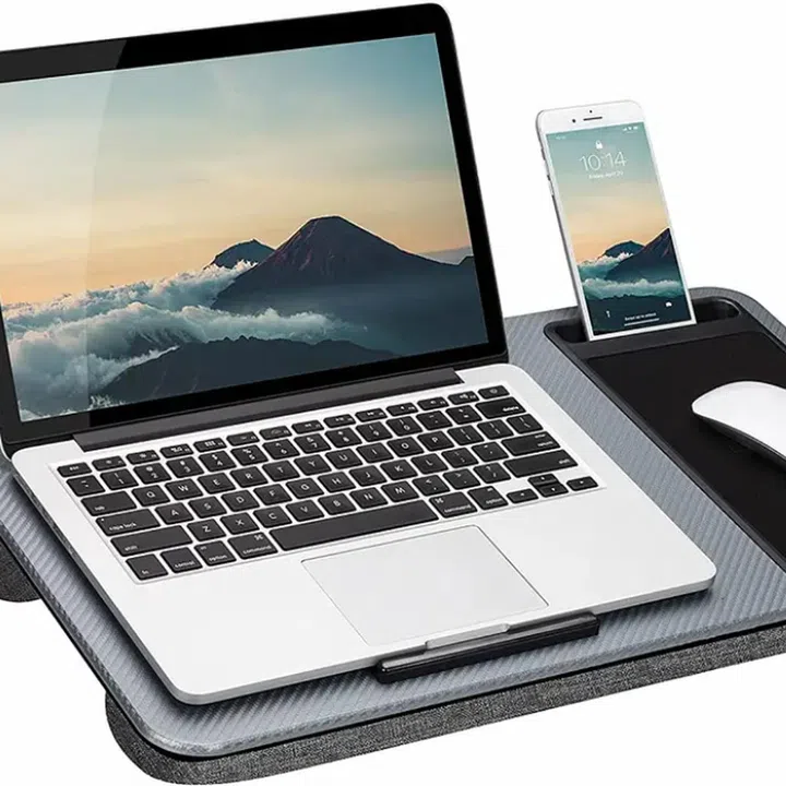 If you need a compact, portable surface for occasional use, this lap desk might be the answer. Underneath is a dual-bolster cushion that keeps you comfortable and cool, while the sturdy top features a large enough space for a 15-inch laptop, an integrated mouse pad, and a slot for holding your smartphone. Great for checking emails while spending time with your kids in the living room.