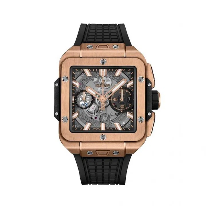 It is also hard to make square watches watertight, although Hublot guarantees water resistance to 100m with this new creation.