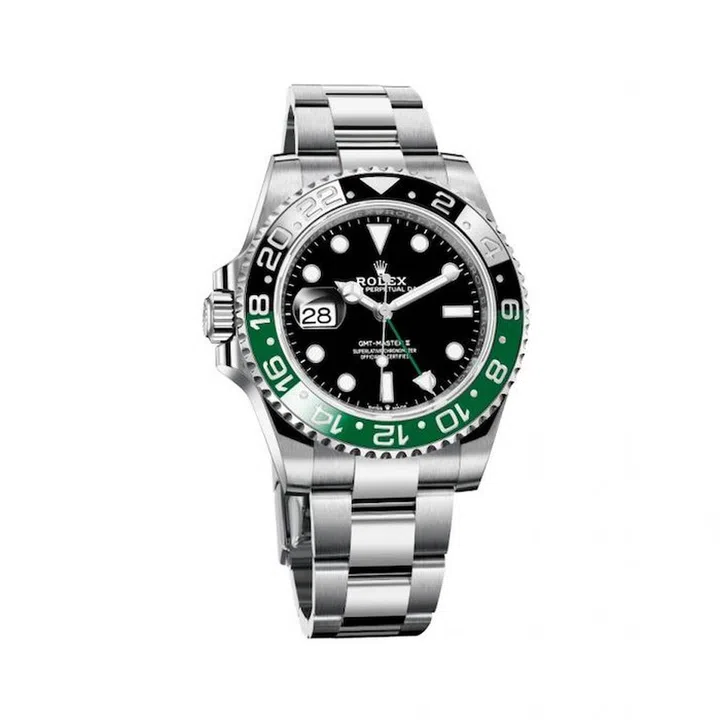It boasts a striking green-and-black Cerachrom bezel and, like other GMT Master II models, is water-resistant to 100m.