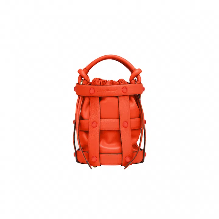 You may want to add this to your list if you’re on the hunt for a bucket bag. Making its debut this season, Ferragamo Cage comprises an outer cage with geometric studs (note the touch of kink) accompanied with an inner removable drawstring pouch. The bag comes in black, white, and seasonal shades of red and Tyrone turquoise.