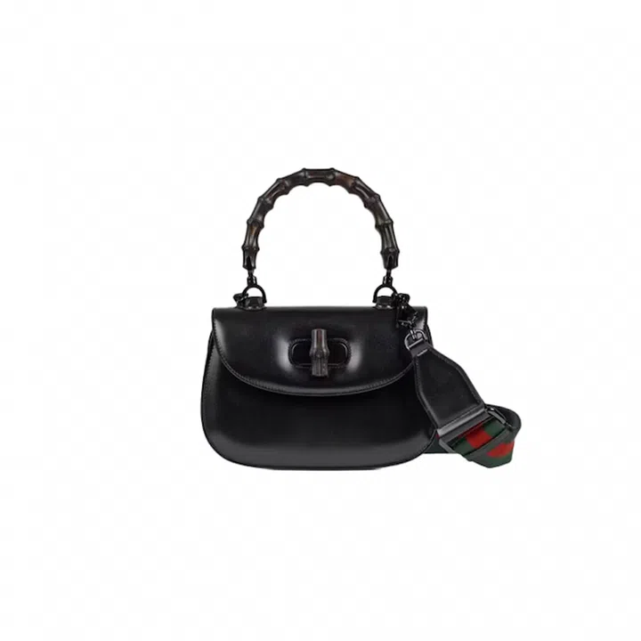 Gucci’s makeover of the Bamboo bag earlier this year stays fresh in mind as we begin to update our wardrobes for the new season. The latest rendition, in all-black treatment that includes the bamboo handles, gives the bag a cool tough edge.