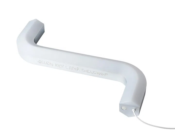 Japanese art studio Gelchop shines the light on Ikea's iconic Allen key, a tiny yet functional object, turning it into a quirky oversized table lamp and torch, available in silver and blue.