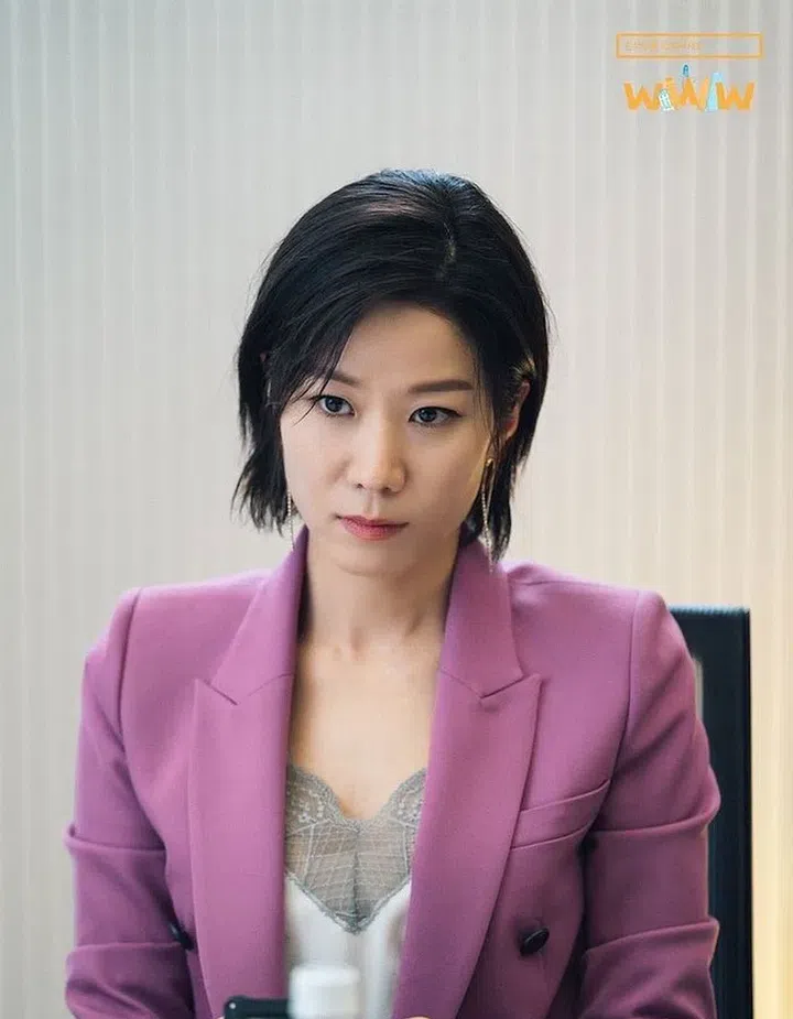Search: WWW featured three formidable women who worked in the competitive tech industry and this particular look from Jeon Hye-jin found a place in our hearts. We loved how she wasn’t afraid to show some skin (tastefully, of course) and wore a lace-trimmed V-neck top underneath her blazer to show off her confidence.