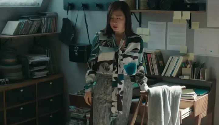 This look worn by Kim Hee-ae in The World Of The Married is already a winning number thanks to the use of clashing prints. Beyond that, the outfit actually cleverly juxtaposes silhouettes too. The tucked-in top provided a squarish silhouette while the checkered straight-legged pants gave an elongating rectangular shape.