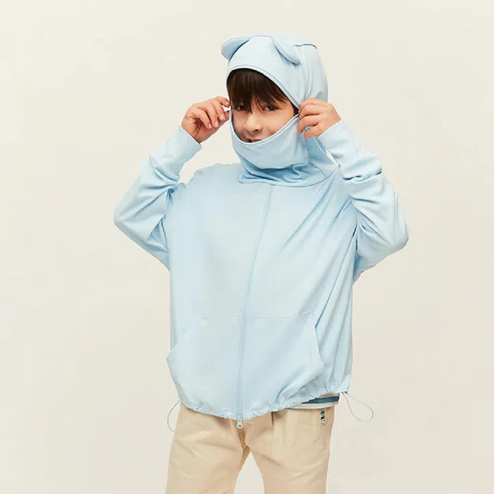 A sun-protective jacket has no business being this cute. This piece comes with a bear ears design that would look adorable on your kid. The hood/mask comes with a zipper for you to close to transform the high neckline into a mask. This is great for kids who absolutely hate to put sunscreen on their faces despite coaxing. Just be sure to keep their hair away from the zipper in case it gets stuck!