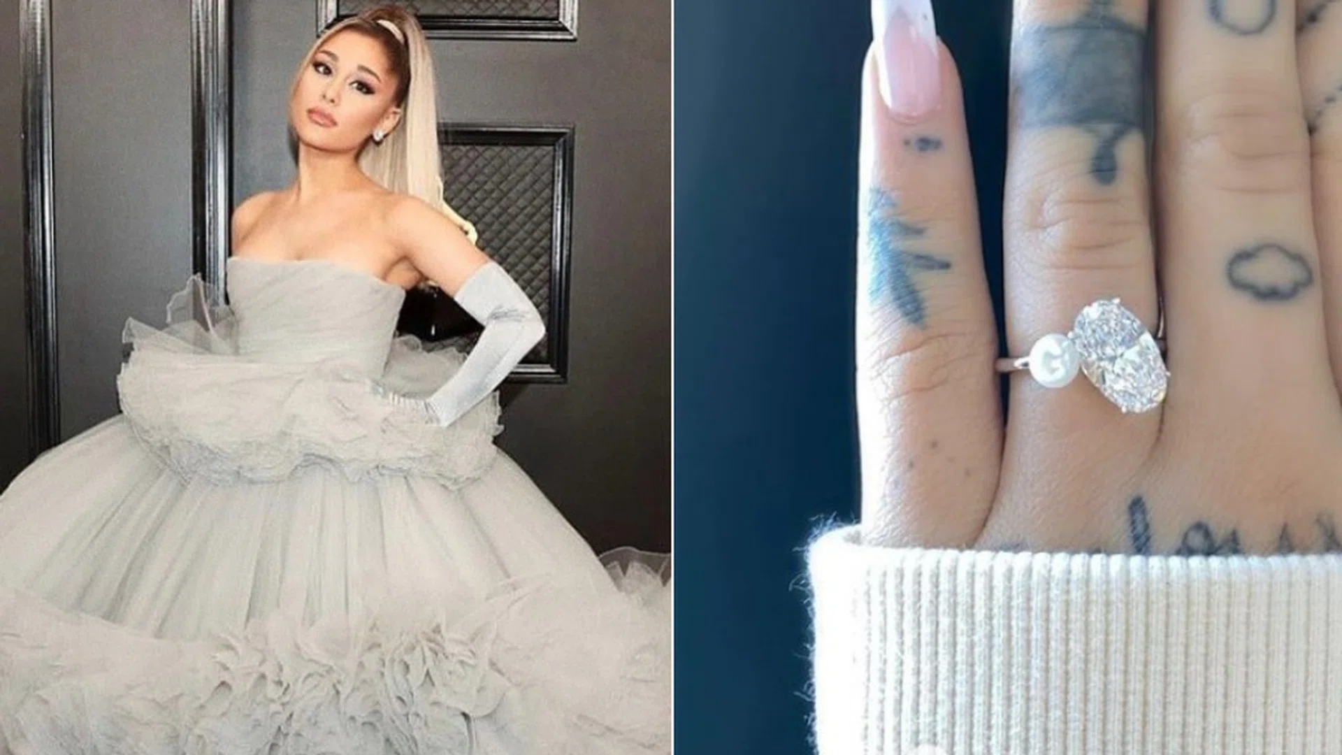 Ariana Grande just debuted a gorgeous diamond and pearl engagement ring
