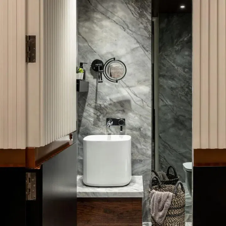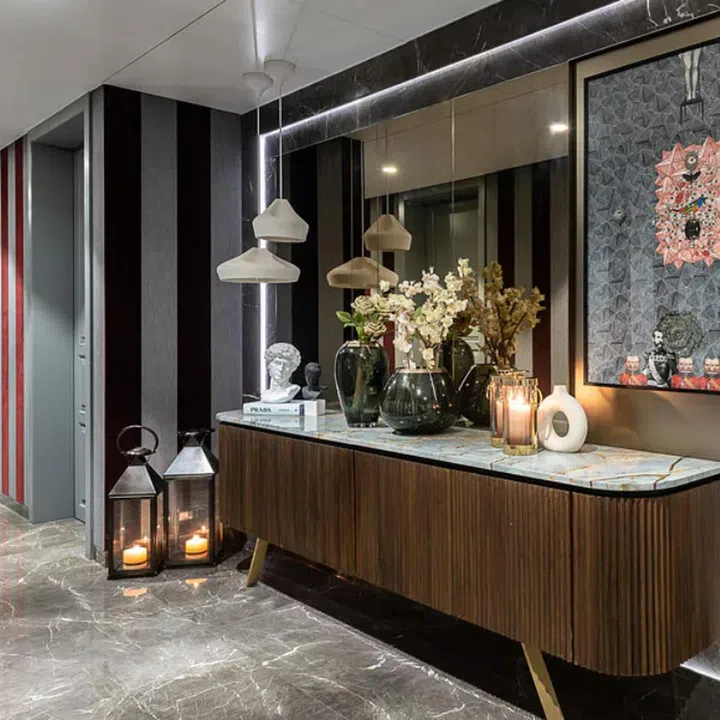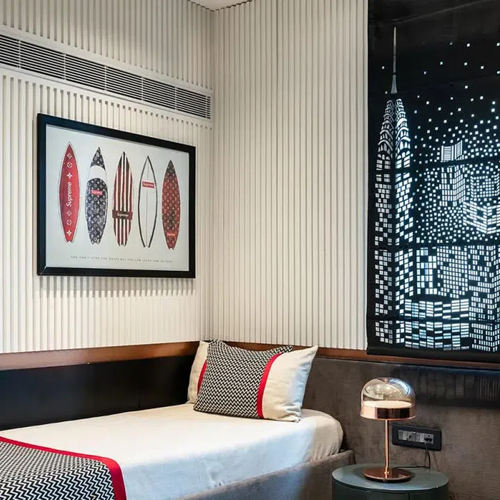 “Meanwhile, the common spaces like corridors, vestibules, dining, and the living area follow a singular design narrative,” describes Ekta.