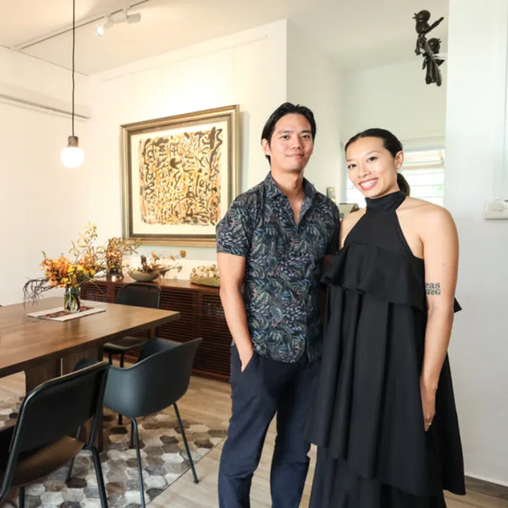 He loves fossils and artwork that have a dynamism to them, while she loves conceptual art. Together, Cliff Hartono and Christina J Chua, the co-founders of Metis Art, show how the different styles of art can co-exist harmoniously in their two-storey black and white terrace house in Chip Bee Gardens.