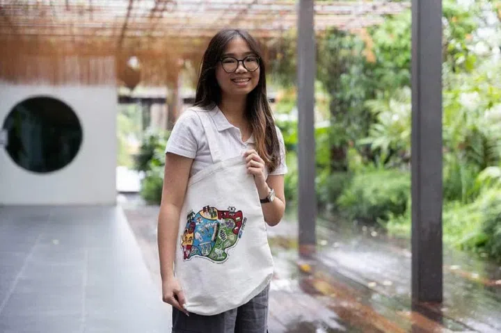 Ms Justine Anne Yeo was one of four student volunteers who helped the artists digitise and compile the final artwork. ST PHOTO: BRIAN TEO