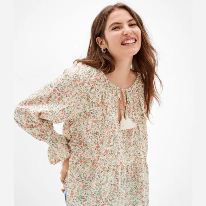 V-neck Long Sleeve Smocked Blouse, American Eagle