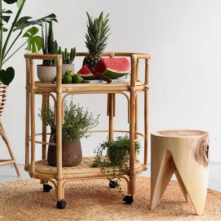 Love breezy boho or coastal vibes? This rattan bar cart could be just what you're looking for. PLus, it isn't just for drinks. It looks equally amazing for displaying your precious plants, photo frames or other decorative items, too.