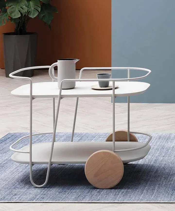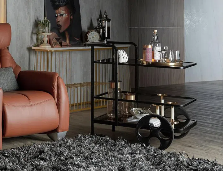 With a contemporary steel frame, eye-catching wheels, and bronze mirror glass trays, this tea or beverage trolley evokes a refined vibe for the modern home.