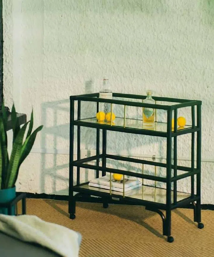 Keep the clutter off the countertop with these carts and trolleys that’ll display your drinks and glassware in style