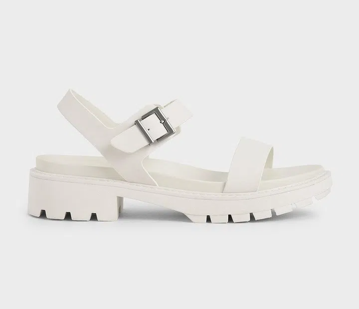 If you favour a minimalist aesthetic, Charles & Keith has the right sandal for you with this all-white buckled style with track soles - they lend a sporty, masculine contrast to a pretty weekend dress.