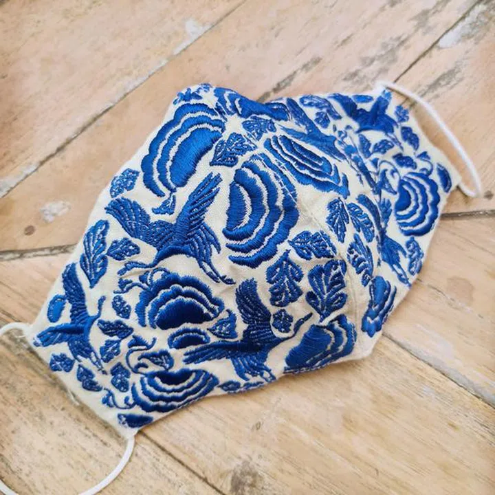 Also from Lark & Peony, this striking linen mask with a rayon poplin lining comes in a gorgeous embroidered blue and white porcelain pattern, as well as elegant crane motifs. It also has a removable PM 2.5 filter. Into that matchy-matchy aesthetic? It comes in a set together with a tote bag too - perfect for holding your mandarin oranges and red packets.