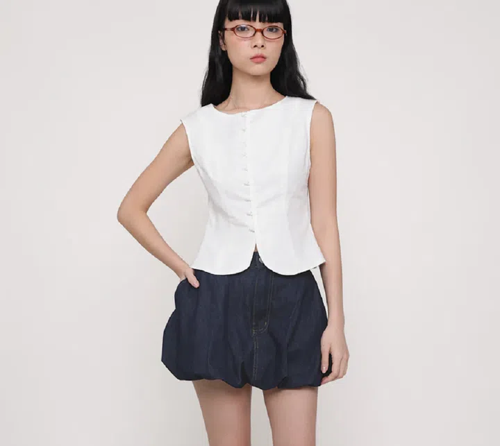 Bubble hem is back in trend. Yes, that same silhouette we used to wear as teenagers. This bubble skort will make you feel like you’re at your daughter’s age again. The best thing yet? It makes your bottom look more plump, if you are into that look. The downside of bubble skirt – or skort in this case – is that there is a risk it might look too slouchy, depending on the fabric used. This denim one ensures it look more structured.