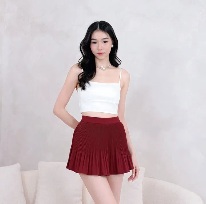1. Mikayla Tiana V2 Micro Pleated Ruffles Skorts in Red, $40.90