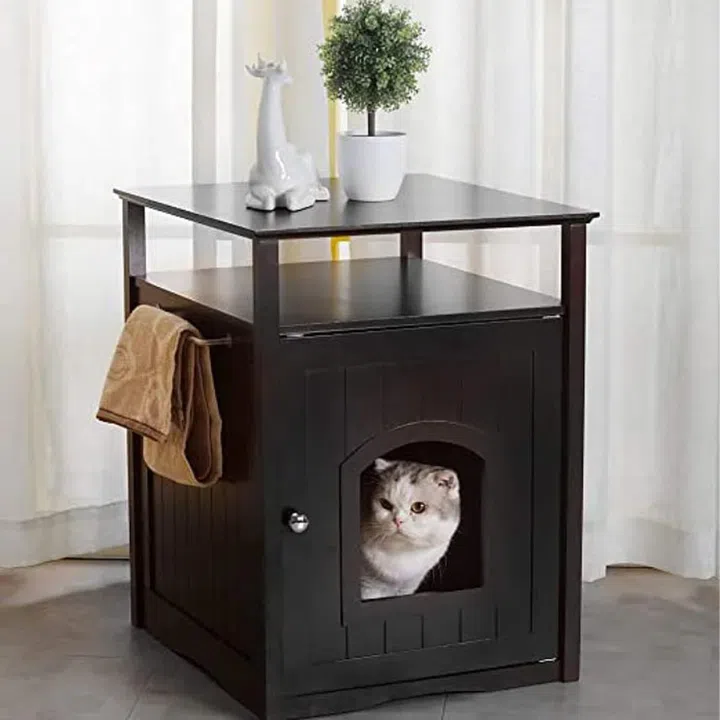 This chic side cabinet may be designed for cats, but we’re pretty sure puppies looking for places to hide from a storm will love it as well! Keep your cat’s litter box neatly stowed away inside this cabinet, without sacrificing any valuable floor space in the living room. This double-tiered table also provides additional counter space for magazines and books.