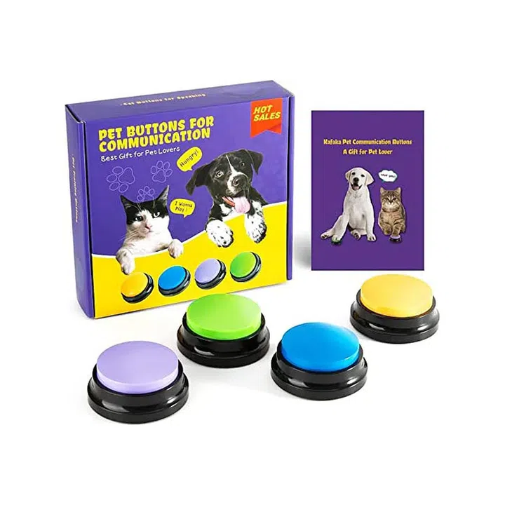 Teach your pet to recognise and respond to simple commands with these buzzers that can record your voice. Over time, your pet will learn to communicate with you by pressing the right buzzer. These buttons can clearly record voice and play back smoothly. Create personalised commands, such as “hungry/food”, “treat”, “go outside”, “happy” and “sad” to help your pet convey its needs and feelings. Different color buttons can be used as options for different training.