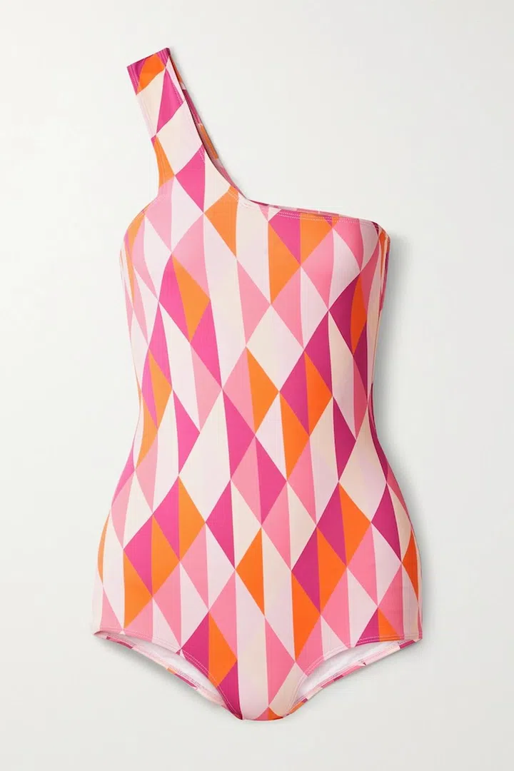 + NET SUSTAIN One-Shoulder Embellished Cutout Stretch-ECONYL Swimsuit, $248, Stella McCartney at Net-a-Porter