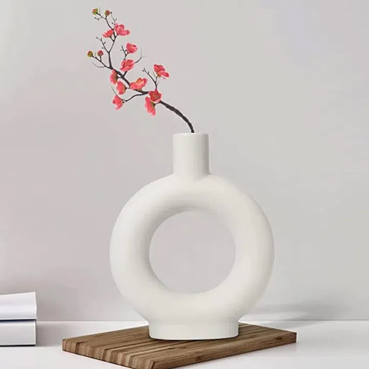 Sleek and minimalist, this doughtnut-shaped vase elevates the look of your desk. The narrow neck is perfect for a single dried flower stalk, making it low maintenance while keeping your desk pretty.