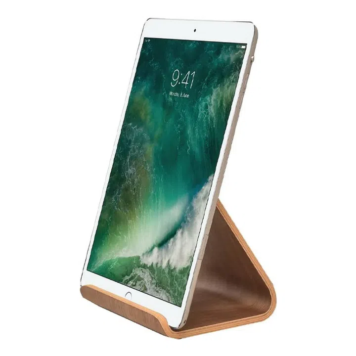 Keep your phone or tablet upright and easy to read with this stand in black walnut. Made of natural wood and polished by hand, this sleek stand will look great on your desk even on its own.