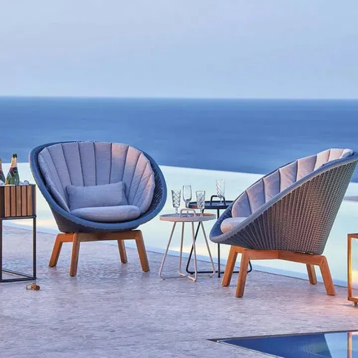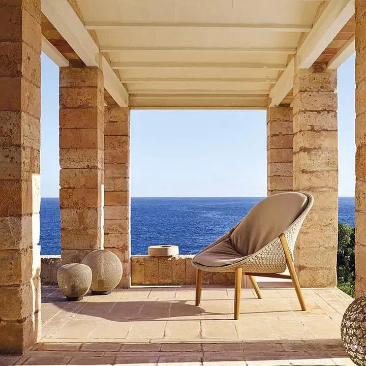 With a curved high back reminiscent of a peacock’s open tail, the Peacock Outdoor Lounge Chair instantly elevates the look of any balcony or pool area. It’s temperature- and UV-resistant thanks to the Cane-line Soft Rope material, keeping its colours as vibrant as the feathers of its namesake bird.
