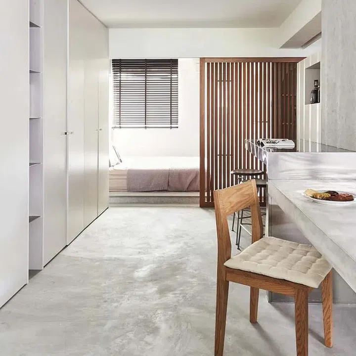 Form follows function in this unconventional home, with a minimalist-chic open concept that’s breathed new life into 40-year-old three-room HDB flat