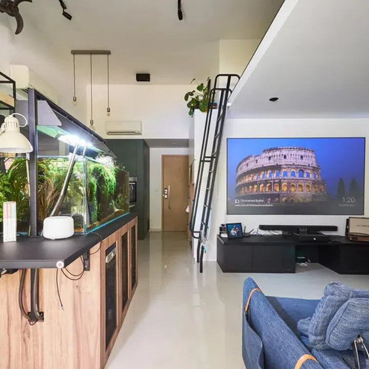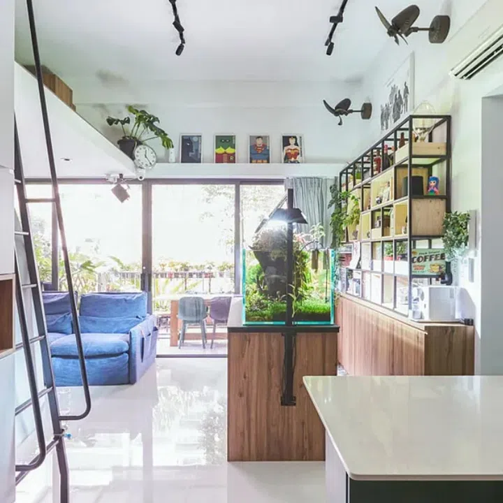 With the move, the 38-year-old aquascape and plant lover can have a large aquarium without worrying about structural loading. Plus, the Private Enclosed Space (PES) allows him to create his own garden.