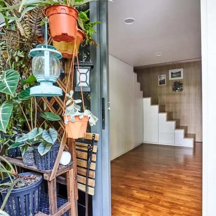 The living area opens out into the PES, which Jinxiang has lovingly transformed into his garden sanctuary.