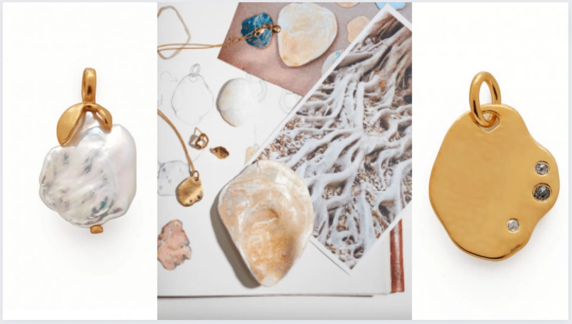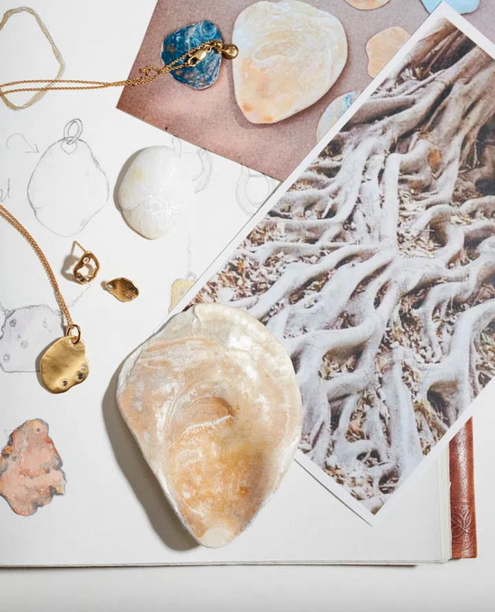 For their outing, Monica Vinader and Mother Of Pearl have created designs with 100 per cent recycled gold vermeil and natural pearls as an ode to natural beauty and the wabi-sabi philosophy of finding beauty in imperfection. Indeed, their inspiration included oyster shells worn out by the waves and broken pottery fixed using the Japanese craft of kintsugi.