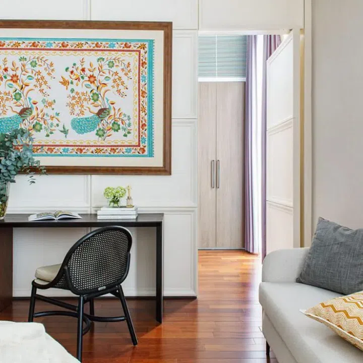 Batik artwork with Chinese-influence motif lends a distinct flavour to this study corner.