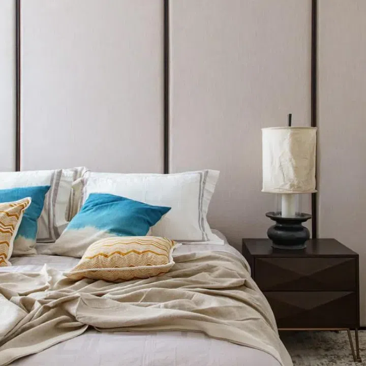 The colour palette of the bedroom is kept simple with just a few pops of colour.